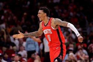 此役火箭前锋小贾巴里·史密斯攻防两端兢兢业业,进攻端保持了稳定的外线火力,防守端多次补防送大帽,出场42分钟13投6中,三分9中4、罚球8中6砍下全队最高22分外加7篮板3助攻2盖帽,正负值+5。
